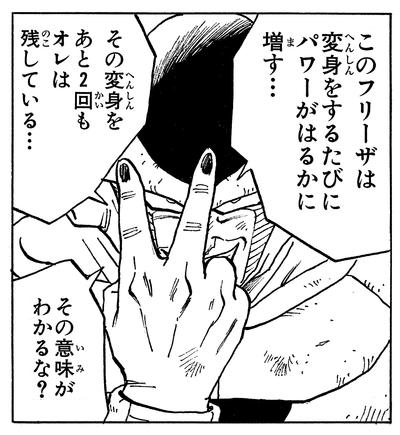 However, another twist reveals that Piccolo had been holding back his full power too, forcing Frieza to reveal another of his frightful forms...