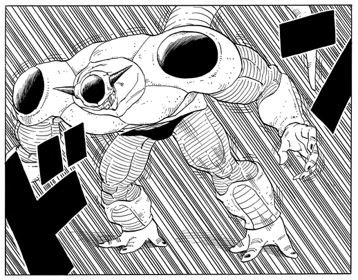 Charging his body with Ki, Frieza destroys his own battle armor and transforms his slight, unassuming frame into that of a hulking monster.