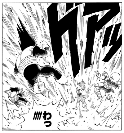 Boasting a Power Level of over one million, he displayed his ferocious strength by blowing up the area around him by simply raising his hand into the air!
