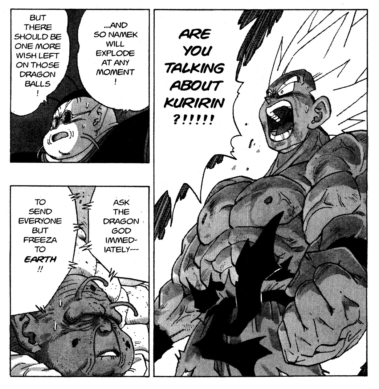 Manna-Tanuki: My favorite is when Goku turned into a Super Saiyan for the first time in Dragon Ball Z. That moment when he says, "Are you talking about Krillin?!!!!!" was cool in the manga, but in the anime it was on a whole different level of intensity.