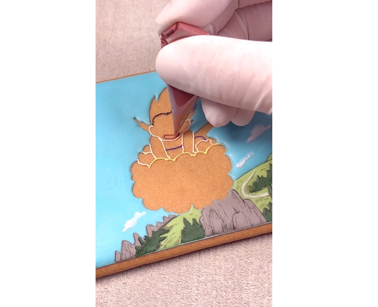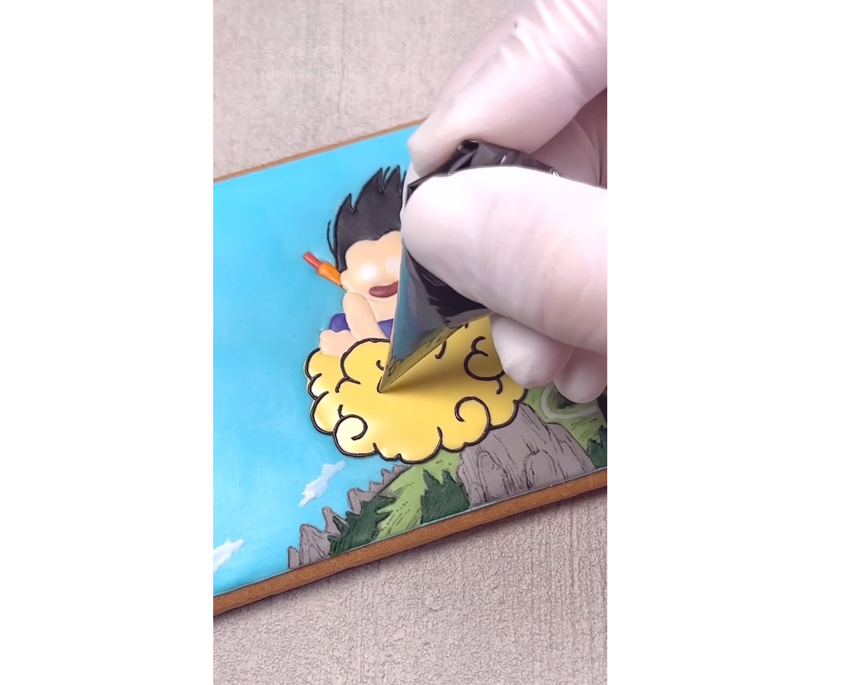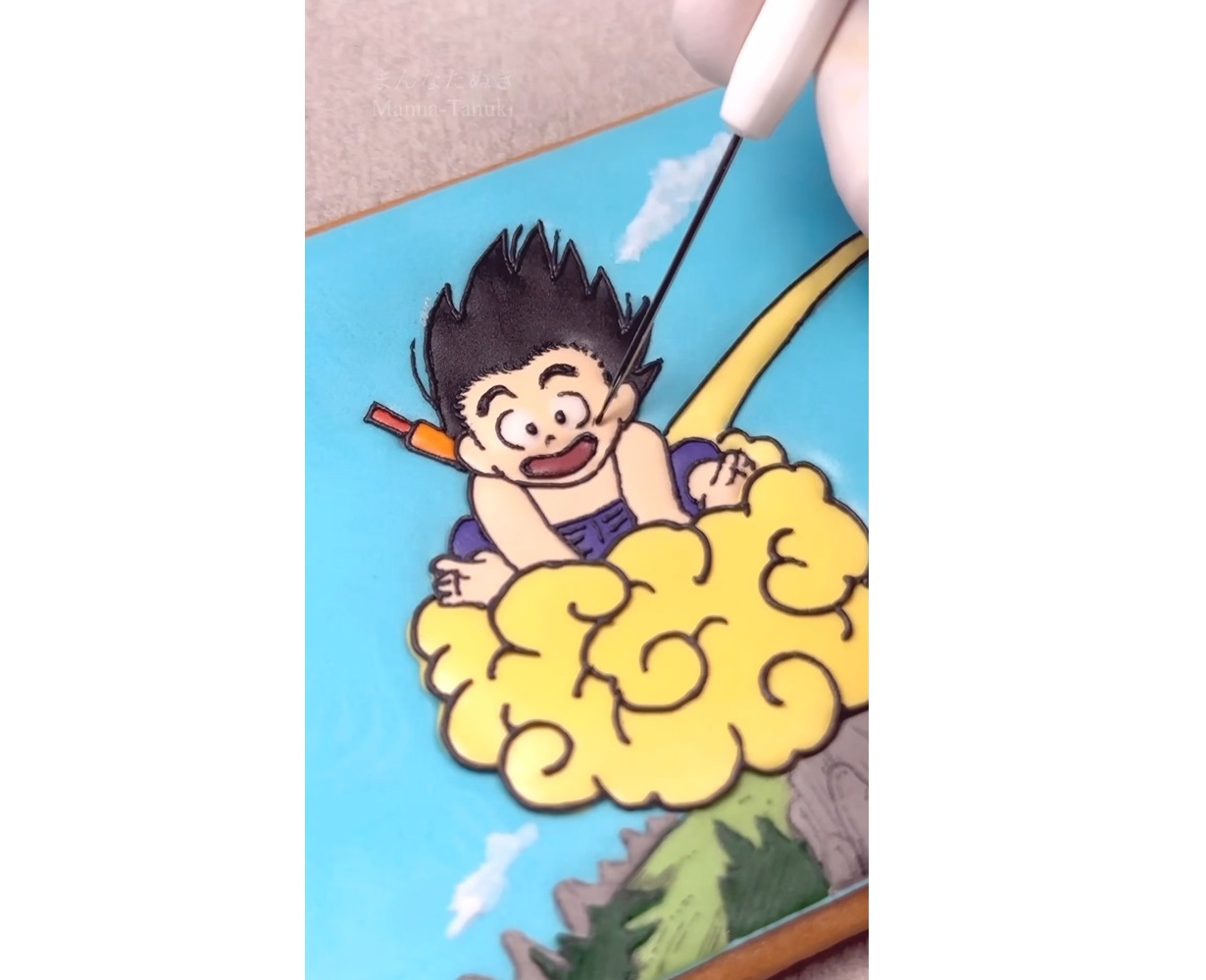 And as it turns out, Manna-Tanuki is actually quite the Dragon Ball fan, so what better way to merge her two passions than to have her recreate one of her favorite Dragon Ball scenes through her iced cookie art?!