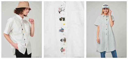 This playful design has Master Karin, Oolong, Pual, Chaoz, and the Usher Ghost all peeking out from the row of buttons on the placket! If you look closely, you might also notice that the fourth button down is actually the Four-Star Dragon Ball!