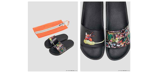 These sandals feature an original design that was inspired by the back covers of Jump Comics Dragon Ball volumes! They also come with a handy mesh carry bag, so you can easily take them out with you for a day of leisure at the beach, or just keep them at home to use as indoor wear!