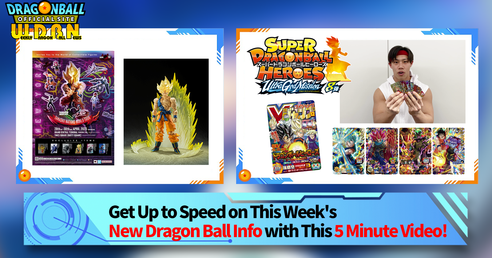 "Weekly Dragon Ball News" is a video series updated every Monday (JST) to bring you the latest news in the world of Dragon Ball! Join V Jump editor Victory Uchida as he covers all the hottest info released in the previous week as well as fresh updates like new product info and site news for the week to come!