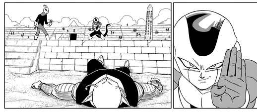This normally would have led to Frost being disqualified from the tournament, but Vegeta tells everyone to let him continue fighting, on the condition that he is allowed to swap in for Piccolo.