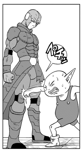 Monaka steps into the ring to face Hit in the final bout, but it turns out that when Beerus told the other Universe 7 members that Monaka is the most powerful fighter in their universe, it was just a lie to get them fired up and make them fight harder! In reality, Monaka is a completely normal person with no fighting ability of note whatsoever!