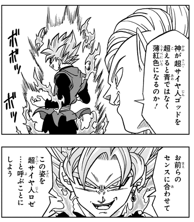 Goku Black's transformation that surpasses the level of Super Saiyan God. His hair in this form changes to a light pink color rather than a blue hue. This is a special transformation that is unachievable by normal Saiyans; Goku Black can only achieve it because he possesses a Saiyan body and a divine spirit.
