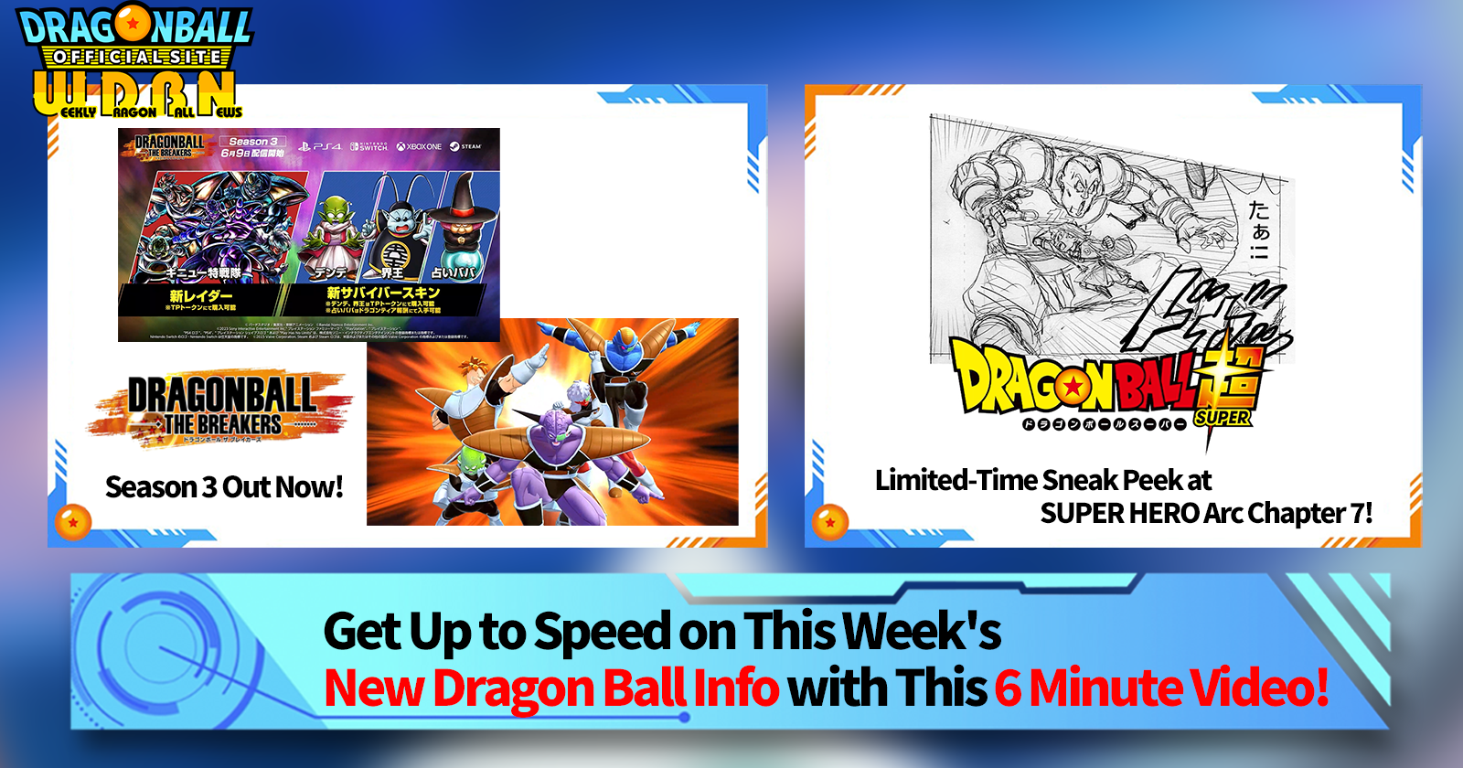 This week's broadcast contains a must-see feature on Season 3 of the hit game DRAGON BALL: THE BREAKERS that released on Friday, June 9!