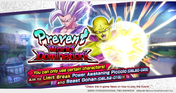 Each stage in this event can only be challenged by specific characters, so try to clear them all to limit break Power Awakening Piccolo (DBL60-02S) and Beast Gohan (DBL52-01S)!