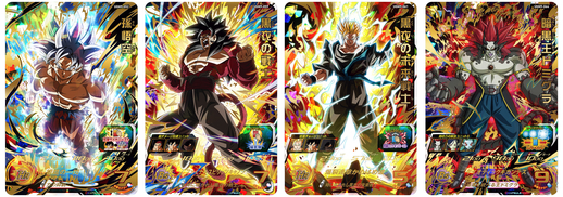 These special UR cards feature successive generations of the Saiyans! There's five cards in total that depict the evolutions the mighty warrior race has undergone throughout the series' history!