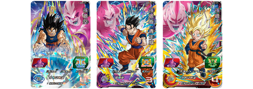 The UR card lineup includes cards that recreate the fight against Majin Buu along with characters from the promotional anime! Among those, the special illustrations for Majin Buu: Evil and Gohan: Adult are designed so that you can create an amazing combo scene when you place them side-by-side! Finally, from the promotional anime come UR cards of Dark King Demigra plus three generations of Goku and his family, and these Saiyan warriors are all too ready to clash against the Dark King!
