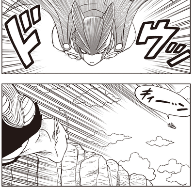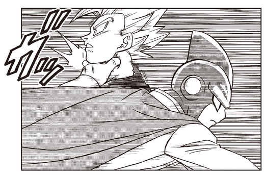 Gohan immediately moves to rescue his daughter, but has his path blocked by Gamma 1 and Gamma 2.