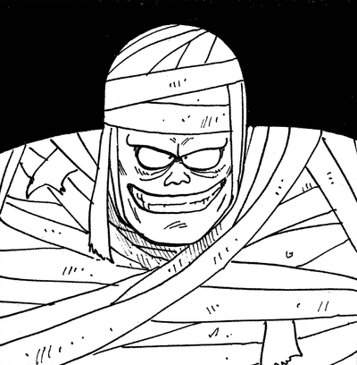 Uranai Baba introduces Miira Kun to his victi- err, "opponents", in a highly unique fashion: "That living hunk of jerky...the mummy!!!!"