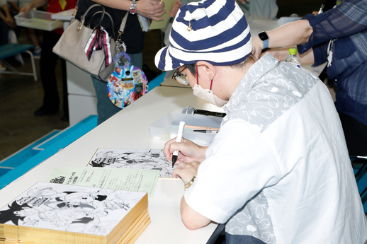 Meanwhile at the Jump Carnival Studio they were holding an event where you could get an autograph from the creators of some of Saikyo Jump's hit manga series! Even Yoshitaka Nagayama, the artist for Saikyo Jump's Super Dragon Ball Heroes: Ultra God Mission!!!!, had an autograph session!