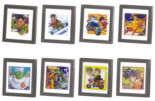 The lineup contains 8 different 55mm tall items, each of which features a framed version of a classic Dragon Ball manga volume cover!