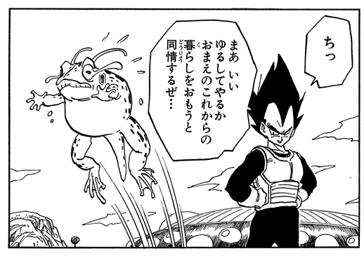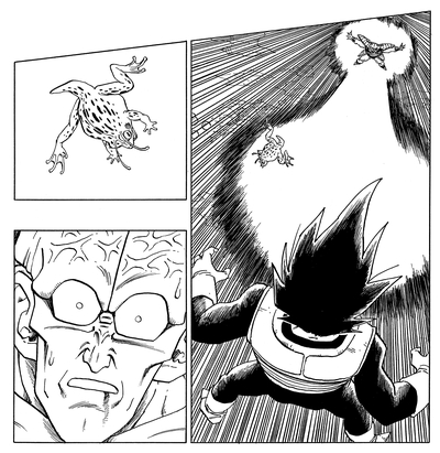 Ginyu still hasn't given up on getting a Saiyan body of his own and tries once more to Body Change with Vegeta, but this time Goku has the idea to chuck a Namekian frog in the way to thwart the move. In the end, Ginyu ends up as a charming green amphibian! What more could you ask for, right?