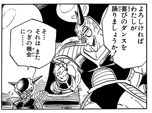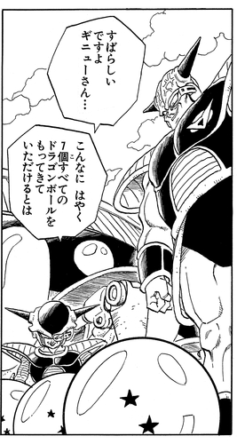 On a side note, Ginyu is apparently a great dancer! He even offers to perform his dance of joy for Lord Frieza to celebrate getting all the Dragon Balls back, but Frieza repectfully declines...