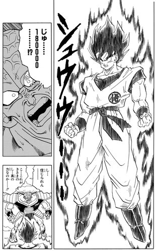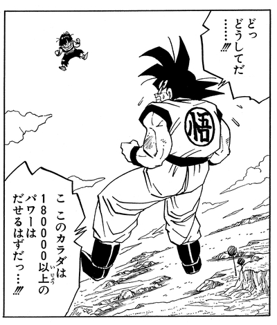 However, even the captain can't hide his shock when Goku uses the Kaio-ken technique to further boost his Power Level all the way up to 180,000!
