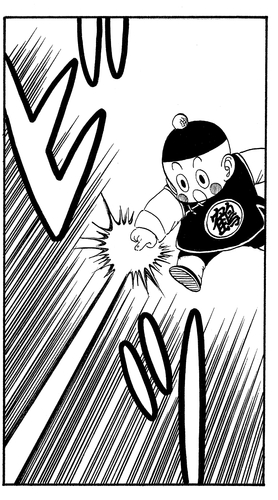 Chaoz pressures Krillin using his Dodonpa technique, but ultimately takes a mighty counterattack from Krillin's Kamehameha.