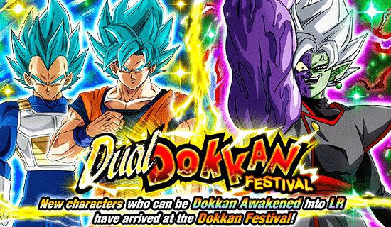 A new Dual Dokkan Festival is on! Each of these summons features a new SSR, and you'll get the chance to recruit [Warrior Race's Epic Battle] Super Saiyan God SS Goku & Super Saiyan God SS Vegeta in one and [Contradictions of Gods and Mortals] Fusion Zamasu in the other!
