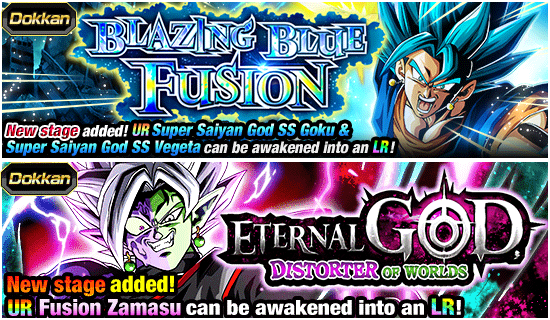 New stages have been added to the "Blazing Blue Fusion" and "Eternal God, Distorter of Worlds" Dokkan Events! Clear these two events to get items for Dokkan Awakening the four new SSR characters available in the Dual Dokkan Festival!