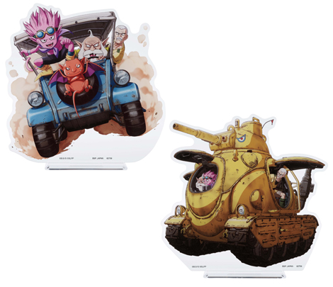 Next up, take a look at these approx. 14cm tall acrylic stands! There are two different kinds to collect, each of which features the three main SAND LAND characters getting ready to depart in a Toriyama-style Mecha.