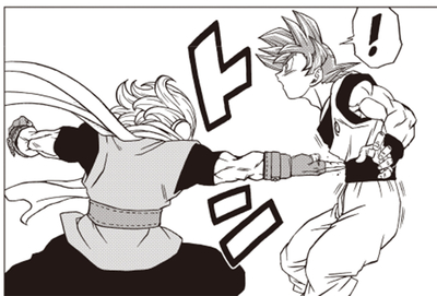 Initially, he's able to fight with blinding speed and unbelievable accuracy by using Ultra Instinct in his Super Saiyan God form, but...