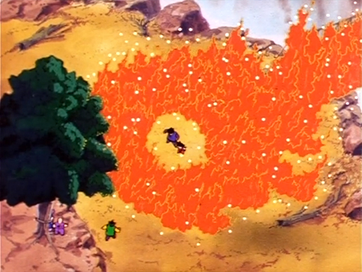 Goku uses the fruits of his training to create a path through the fire and Fan-Fan seizes upon the distraction to launch a counterattack of her own on Tsurusennin's henchmen!