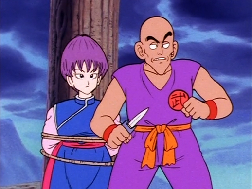 Once in the past, Goku encounters a mysterious young man who is trying to peek at Fan-Fan while she bathes. This man is actually the younger version of Kamesennin, and is apparently in love with Fan-Fan! In addition, Goku learns that the prideful young Kamesennin is currently training under Mutaito, the greatest martial artist in the world.