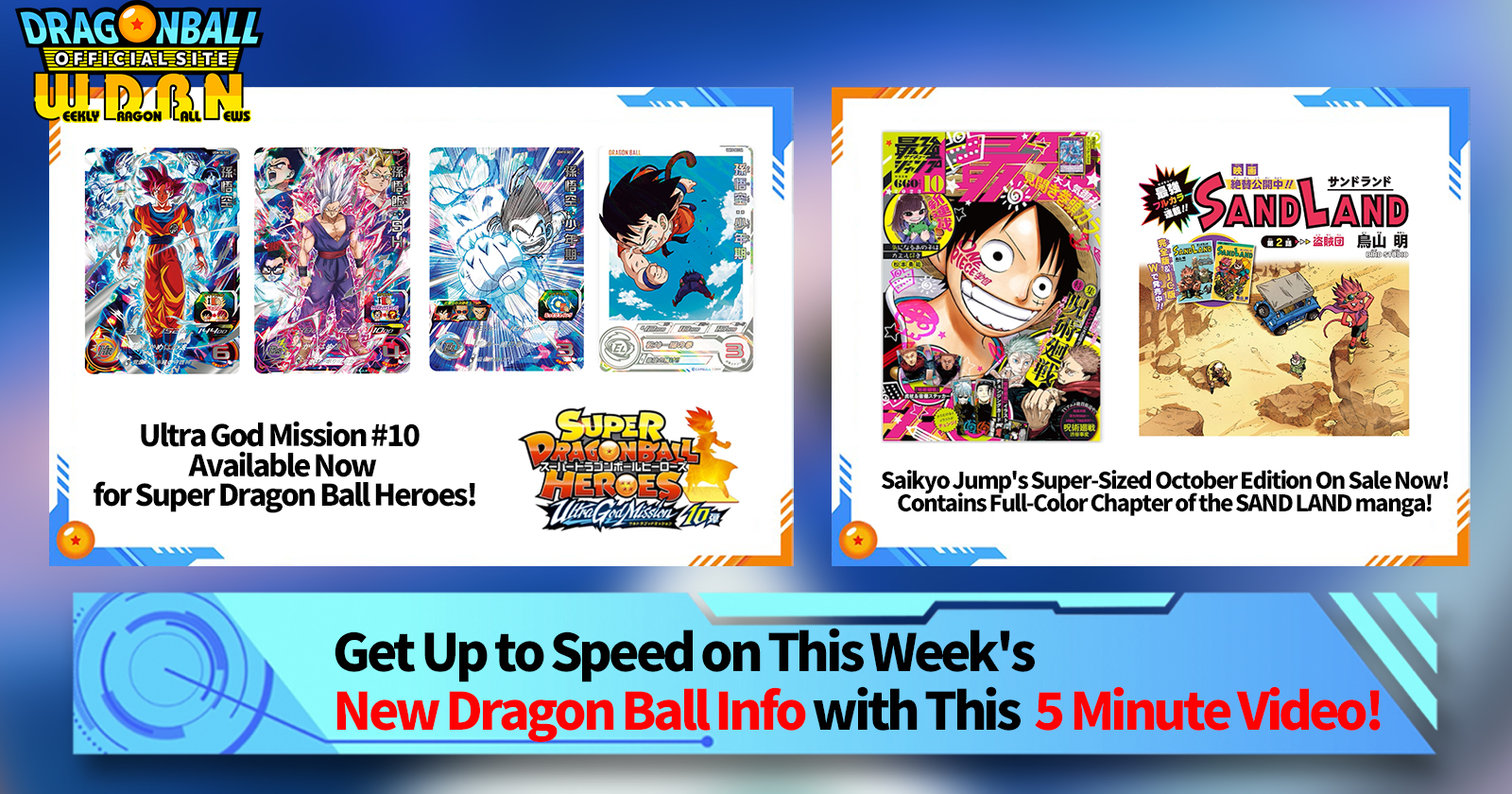 "Weekly Dragon Ball News" is a video series updated every Monday (JST) to bring you the latest news in the world of Dragon Ball! Join V Jump editor Victory Uchida as he covers all the hottest info released in the previous week as well as fresh updates like new product info and site news for the week to come!