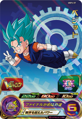 The Super Dragon Ball Heroes bonus card this time is Vegito! The powerful Fusion warrior has the "Limit-Breaking Power" Ability that will double his power and guard whenever your team has a Power Level of 4000 or above! And what's more, the card art can be joined with the Ultra God World CP Cards in Ultra God Mission #10 to form a larger illustration!
