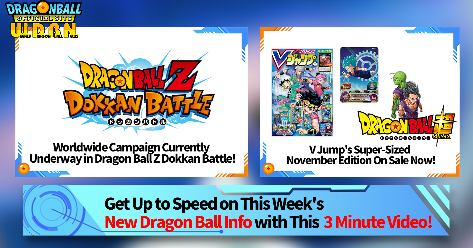 "Weekly Dragon Ball News" is a video series updated every Monday (JST) to bring you the latest news in the world of Dragon Ball! Join V Jump editor Victory Uchida as he covers all the hottest info released in the previous week as well as fresh updates like new product info and site news for the week to come!