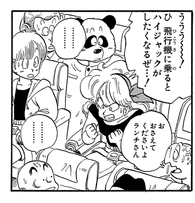 Lunch also travels with the gang to the 22nd Tenkaichi Budokai by plane to cheer for her friends, barely managing to control her instincts to hijack the aircraft all the way...