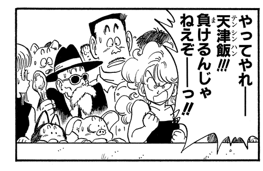 She again cheers on Tenshinhan during his battle against Taopaipai, telling him "C’mon, take him down, Tenshinhan!!! Don’t you dare lose--!!"