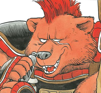Bandit Bear is a gargantuan ursine humanoid equipped with armor and a wicked-looking blade.