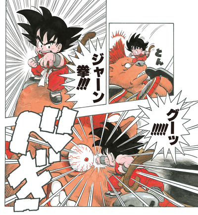 However, Bandit Bear proves to be no match for Goku, and is quickly defeated by a devastating Jan-Ken (Rock, Scissors, Paper) hit right between the eyes!
