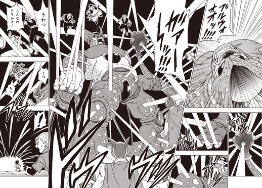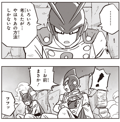 The warriors see Cell Max unfazed by their half-hearted hits. Knowing they need to hit him with something stronger, they start thinking of a counterattack. Gamma 2 decides that they need to use "a certain method" as a counter offensive against Cell Max. But what on Earth could the method Gamma 2 decided to use be?!