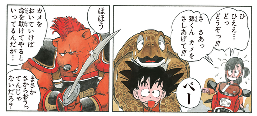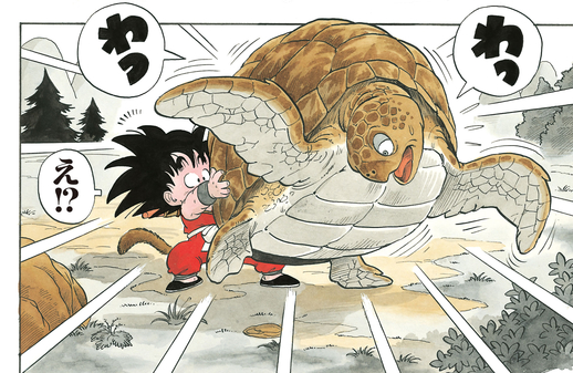 Upon reaching the ocean, Umigame calls upon Kamesennin to reward Goku for his good deed. This is how Goku ends up with his trusty riding cloud, Kintoun.