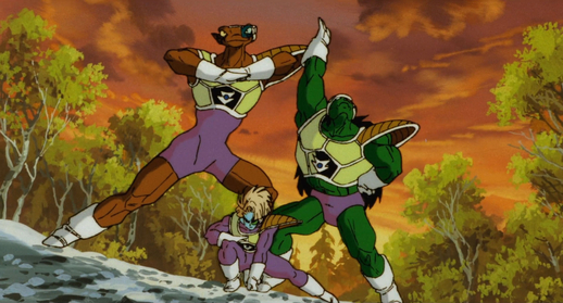 Cooler arrives and joins the attack, but an injured Goku and his allies manage to escape. This leads Naise and the other squadron members to begin destroying the surrounding areas at random to search for the runaway Saiyan.