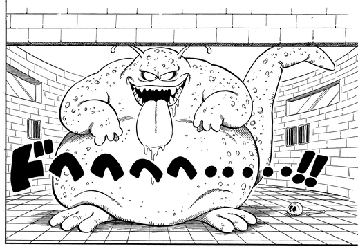 Buyon is a monster who guards a secret room on the 5th floor of Muscle Tower, Red Ribbon Army's northern base. He has a long tongue and a gelatinous body that is impervious to all weapons.