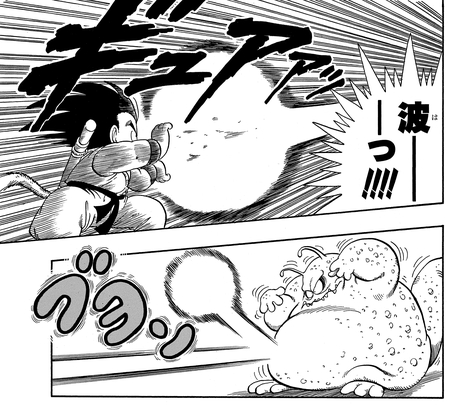 Even Goku's full-powered assault and Kamehameha get reflected off the monster's jiggly stomach.