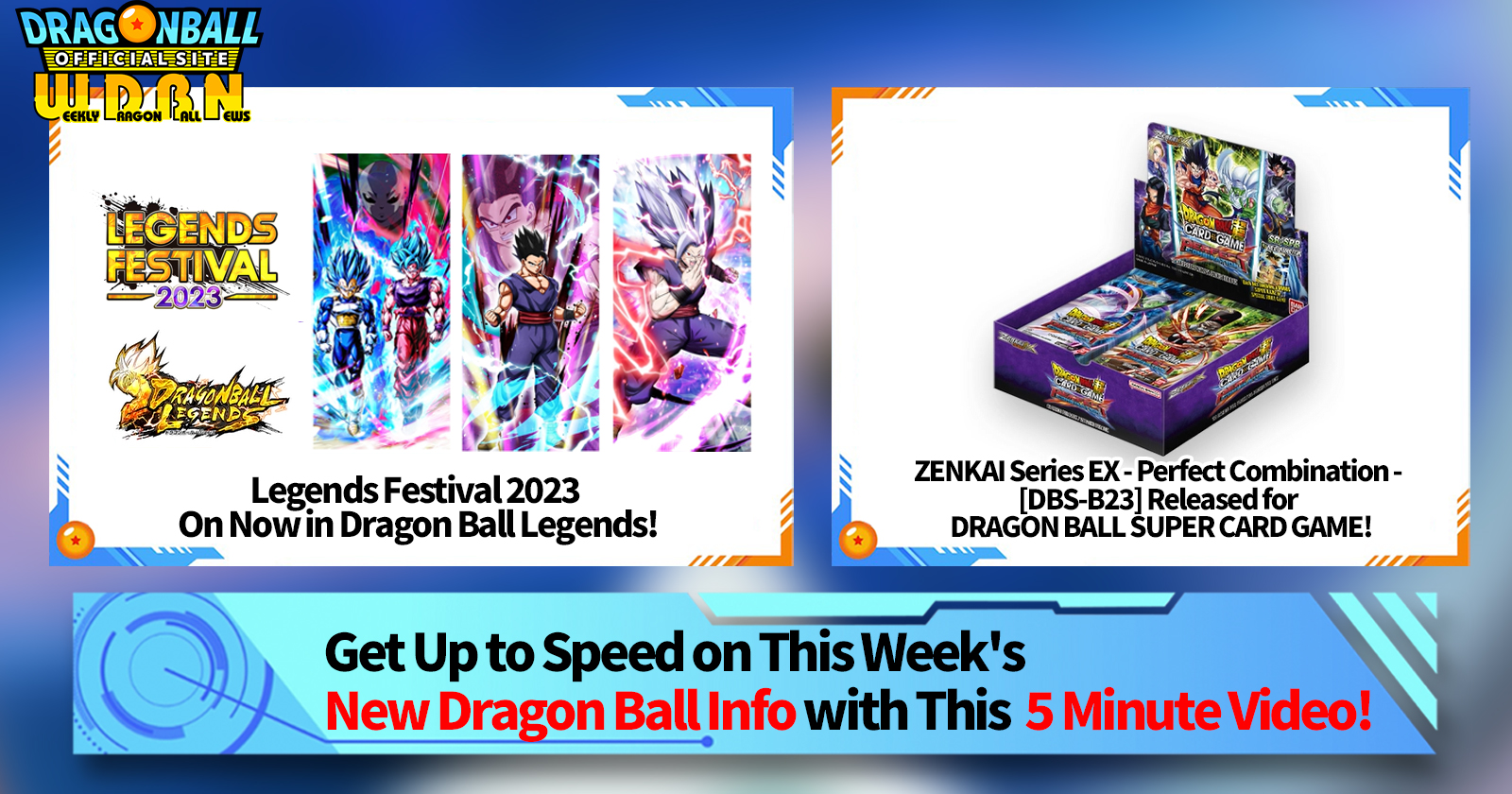 "Weekly Dragon Ball News" is a video series updated every Monday (JST) to bring you the latest news in the world of Dragon Ball! Join V Jump editor Victory Uchida as he covers all the hottest info released in the previous week as well as fresh updates like new product info and site news for the week to come!
