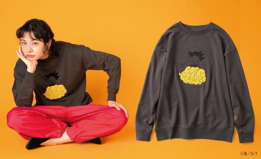 Fulfill your dreams of riding Kintoun with this sweatshirt! Loop-shaped sagara embroidery was used to give the eye-catching cloud on the front a fluffy texture. Goku has been purposely printed in muted colors to give a much more mature feel to the top. Brushed cotton was utilized for the lining to make it comfortable to wear from fall all the way through spring!