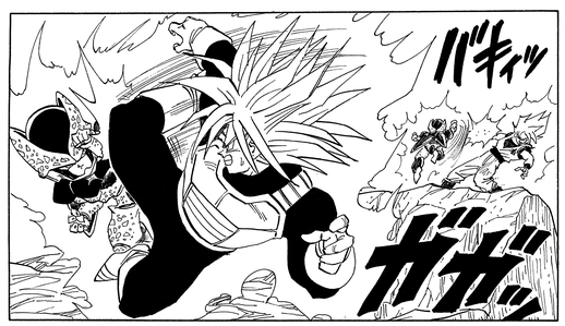 Trunks powers up to yet another level beyond Super Saiyan and tries his best against Cell, but ultimately admits defeat when it is pointed out that the power needed to support this transformation requires so much energy that it reduces his speed drastically.
