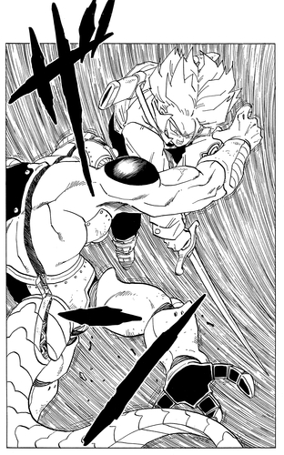 Trunks stands up against Vegeta, who was attempting to allow Cell to further evolve from his Second Form, but fails to stop the monster from achieving his Perfect Form.
