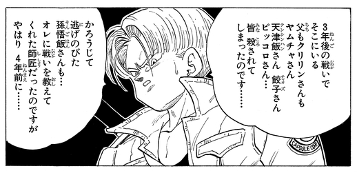 After Gohan defeats Cell, Trunks is brought back to life by the Dragon Balls, and he finally returns to the future.