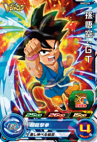 This issue of V Jump includes a Goku: GT card with the CAA "Goku's Ultimate Ryu-Ken (Dragon Fist)" for Super Dragon Ball Heroes! This card becomes an attacker from the 2nd turn onwards and when it successfully gets a full charge with its card action, Goku will get a permanent +8000 boost to his power! You can also power up Goku's Ryu-Ken (Dragon Fist) by swiping the card back and forth on the game area!