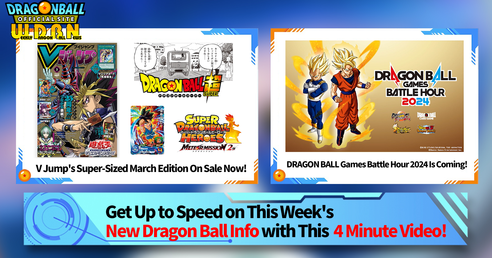 "Weekly Dragon Ball News" is a video series updated every Monday (JST) to bring you the latest news in the world of Dragon Ball! Join V Jump editor Victory Uchida as he covers all the hottest info released in the previous week as well as fresh updates like new product info and site news for the week to come!