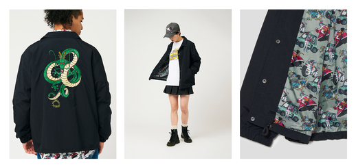 Both jackets feature an embroidered design of Goku and Krillin taking a ride on the Kinto’un on the front!