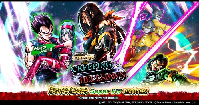 The app game Dragon Ball Legends has just launched a new summon called LEGENDS STEP-UP - CREEPING HELLSPAWN -! This time, the new LEGENDS LIMITED Super #17 (DBL67-05S) and SPARKING Bulla: Vegeta (Assist) (DBL67-04S) join the fight!